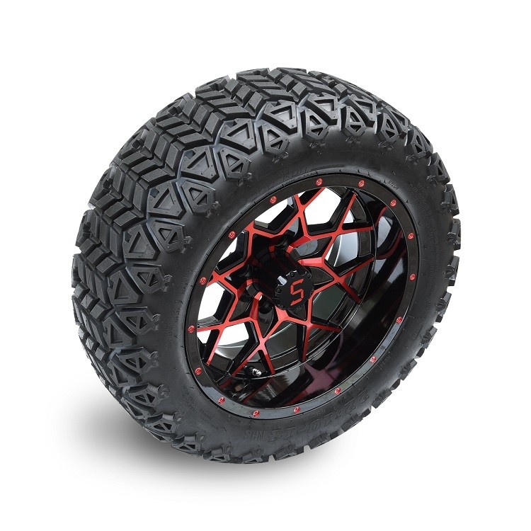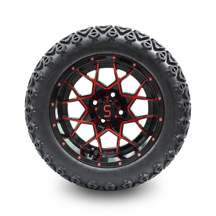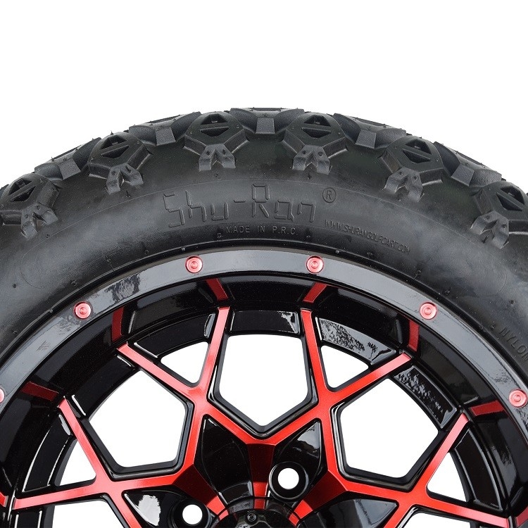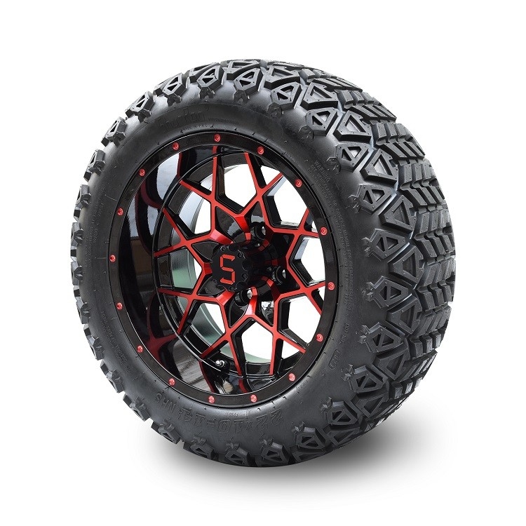 गोल्फ कार्ट 14 इंच लाल/चमकदार काला पहिया और 22 इंच टायर कॉम्बो