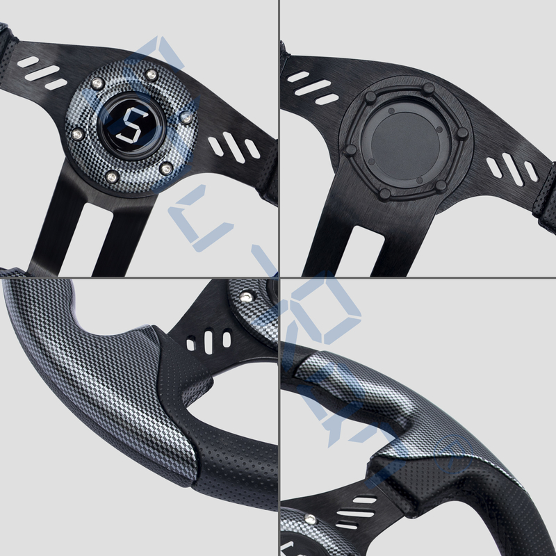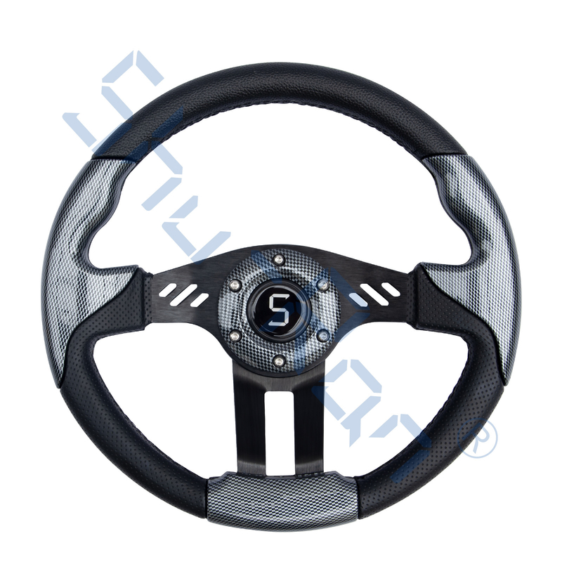 गोल्फ कार्ट एविएटर 5 कार्बन फाइबर ग्रिप/ब्लैक स्पोक्स स्टीयरिंग व्हील