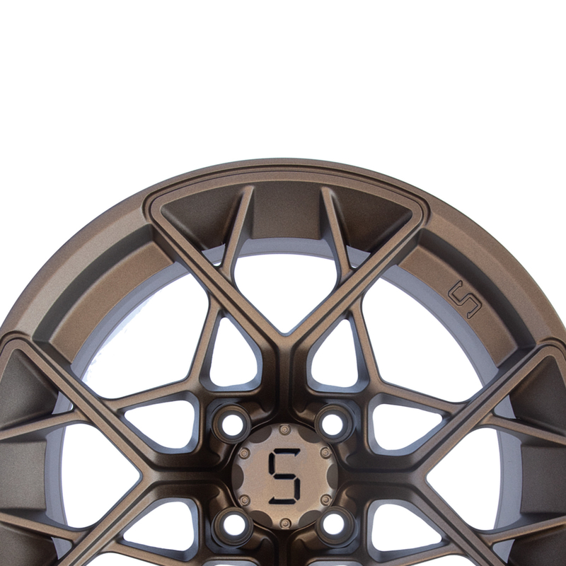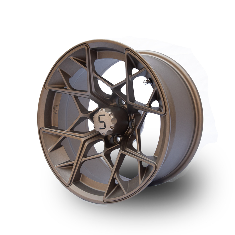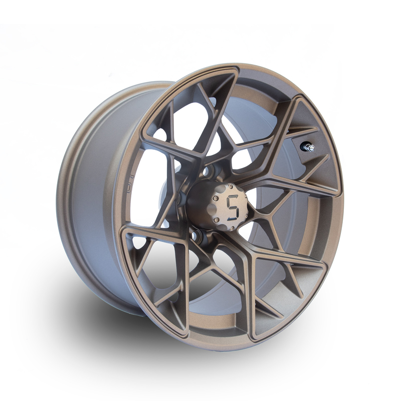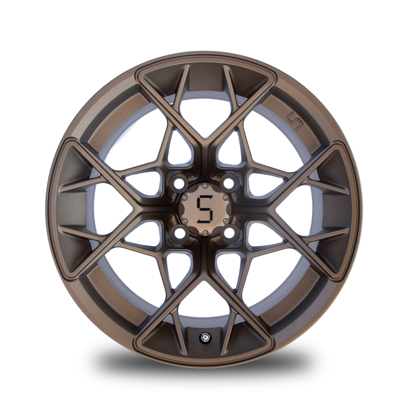 गोल्फ कार्ट 14 इंच कांस्य एल्यूमीनियम व्हील्स सेंटर कैप सहित 4x4(101.6mm) बोल्ट पैटर्न